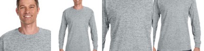 100% preshrunk ComfortSoft® cotton; Tag-free neck label for ultimate comfort; Double-needle coverseamed neck; Taped shoulder-to-shoulder with ribbed knit cuffs; Ash is 99% cotton, 1% polyester; Light Steel is 90% cotton, 10% polyester;