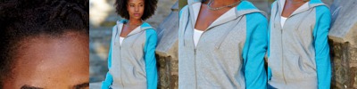 55% cotton/25% metallic yarn/20% polyester French terry • 8 oz. • glitter knit on sleeves • cover-stitched throughout • 2x1 rib-knit cuffs • waistband and pocket openings • contrast sleeves and hood lining • Sizes: S-2XL