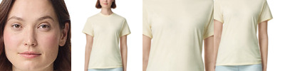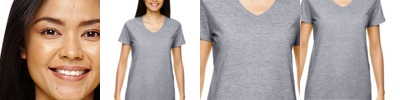 preshrunk 100% ring-spun cotton • 4.5-oz. • 30 singles • missy contoured silhouette with side seams • 1/2" rib-knit v-neck collar • shoulder-to-shoulder taping • double-needle sleeve and bottom hems • tear-away label • Sizes: S-2XL