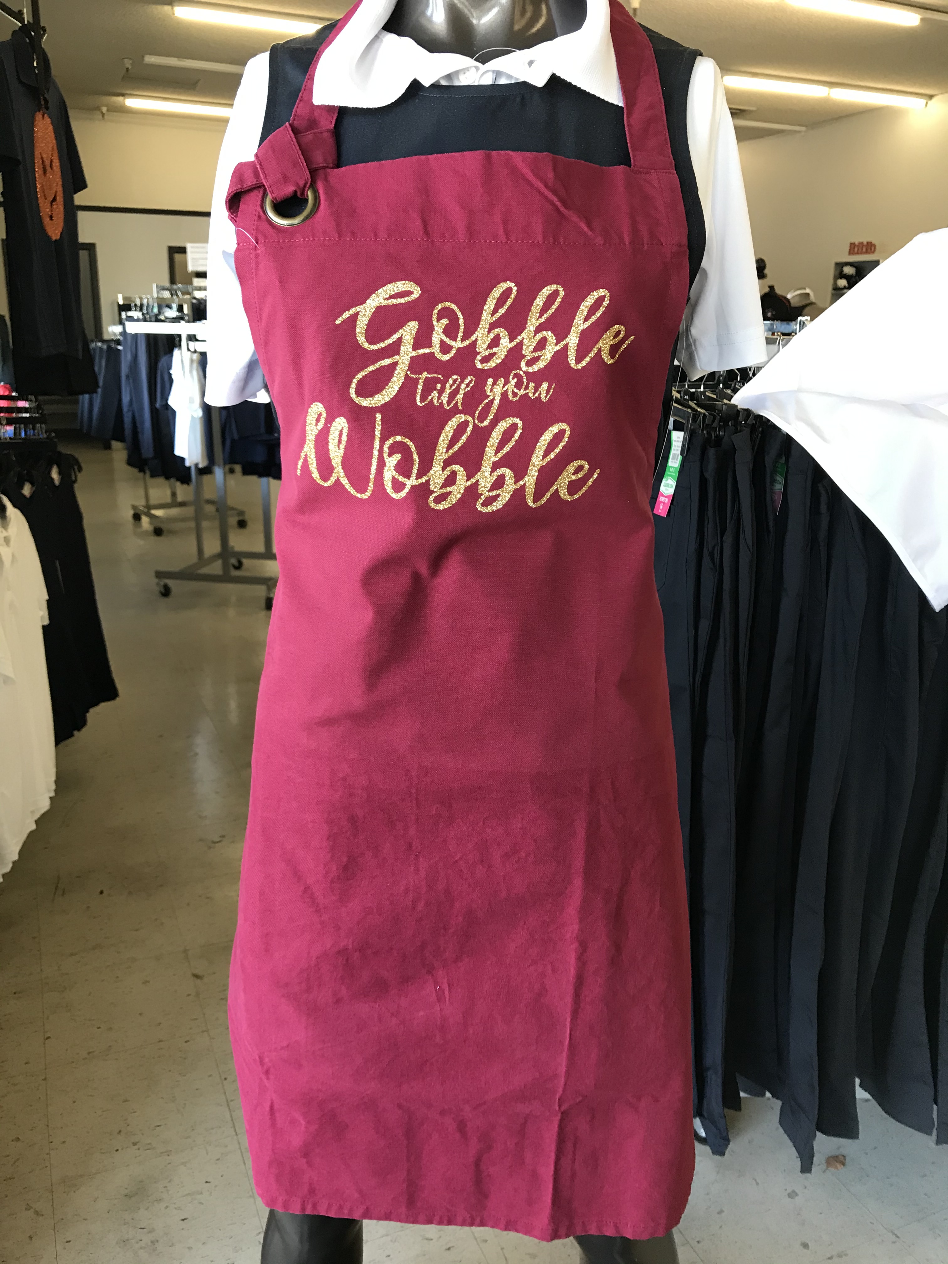 Red and Green Glitter on a white Apron
