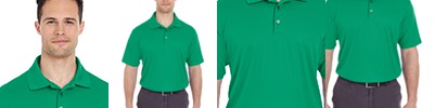 4.4 oz., 100% polyester mesh piqué; Moisture-wicking; Pill-resistant; UV protection; Fully taped flat rib-knit collar; Half-moon patch; 3-button placket with dyed-to-match buttons; Double-needle flat-lock stitching at shoulders;