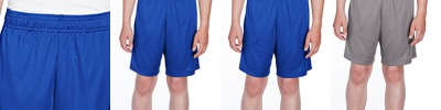 3.5 oz./yd2 / 130 gsm 100% polyester interlock; Moisture-wicking and UV 40+ protection; Side pockets; Team fit; Cationic dyes to ensure superior brightness and excellent color fastness; Elasticized waistband with flat internal drawcord; 9" inseam; Transitioning from heat-seal label to tear away label. Inventory may be mixed;