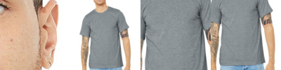 Retail fit Tear-away label Side seamed Athletic Heather/Black Heather: 4.2-ounce, 90/10 Airlume combed and ring spun cotton/poly Heather CVC Colors: 4.2-ounce, 52/48 Airlume combed and ring spun cotton/poly